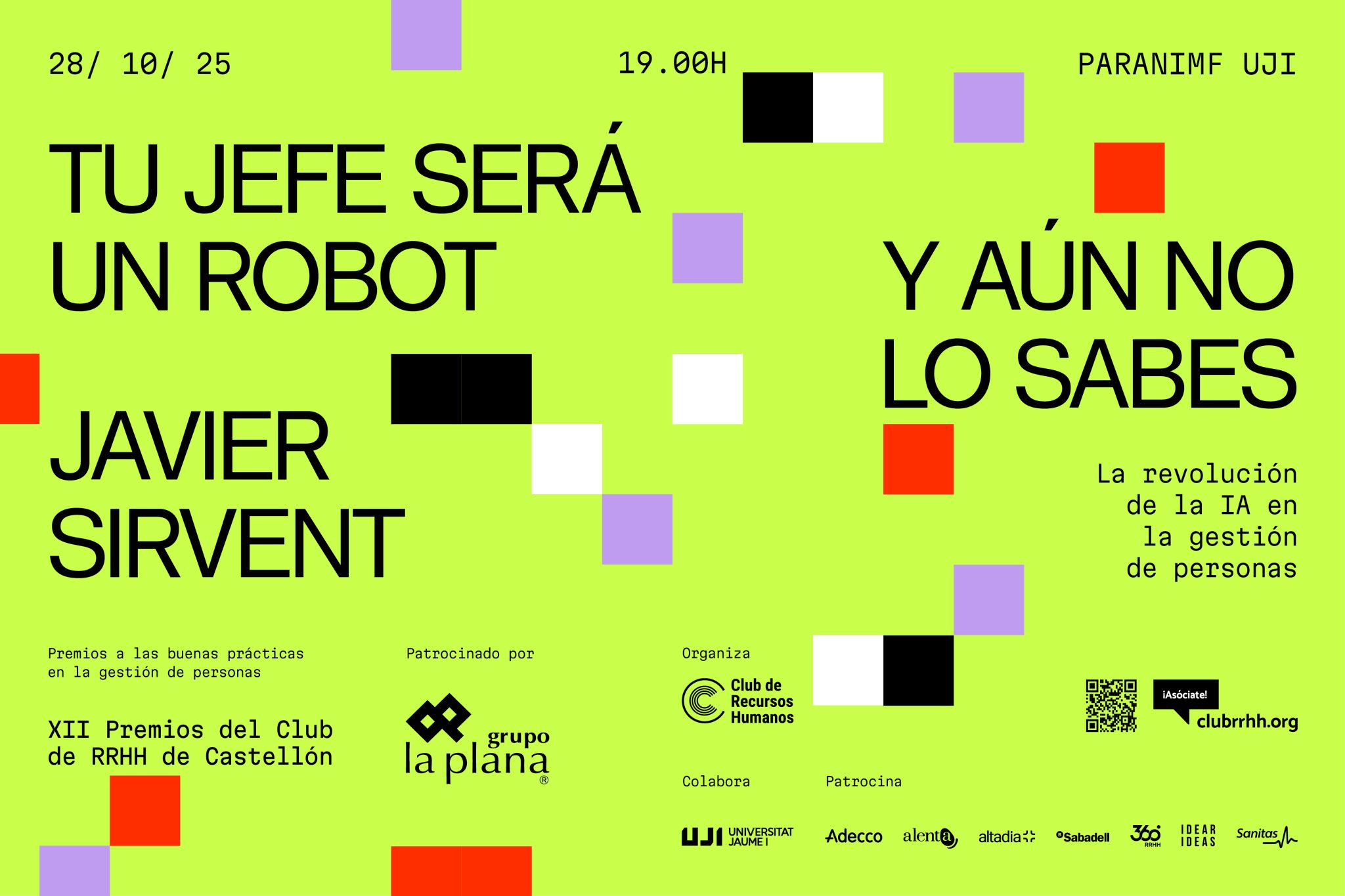 Organiza una nueva cita para reflexionar sobre el impacto de la tecnología en la gestión de personas. En esta ocasión, el Paraninf de la UJI acogerá la charla de Javier Sirvent, uno de los divulgadores más reconocidos en materia de innovación y transformación digital, bajo el título “Tu jefe será un robot y aún no lo sabes”.