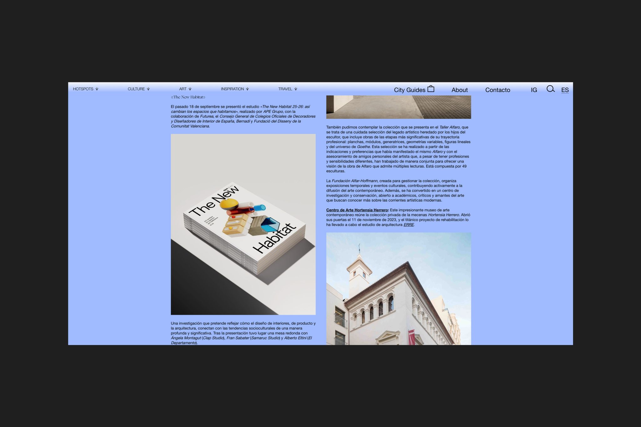El proyecto 'The New Habitat' sigue captando la atención en el mundo del diseño. Recientemente, fue mencionado en CC Magazine como parte del València Design Fest, un evento que ha reunido lo mejor del diseño, la artesanía y la creatividad. Este estudio reflexiona sobre cómo los espacios que habitamos se transforman a través del diseño y las tendencias actuales, explorando nuevas formas de interpretar el hábitat en colaboración con figuras clave del sector.