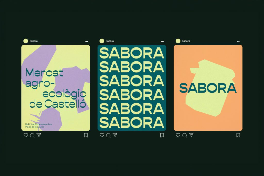 Para el naming, decidimos alejarnos de las opciones más descriptivas o las más comunes en el sector (relacionadas con la cercanía y la sostenibilidad) y optar por una fórmula más evocativa. Sabora presenta una sonoridad suave y es fácil de recordar tanto en valenciano como en castellano y se centra en el sabor del producto.