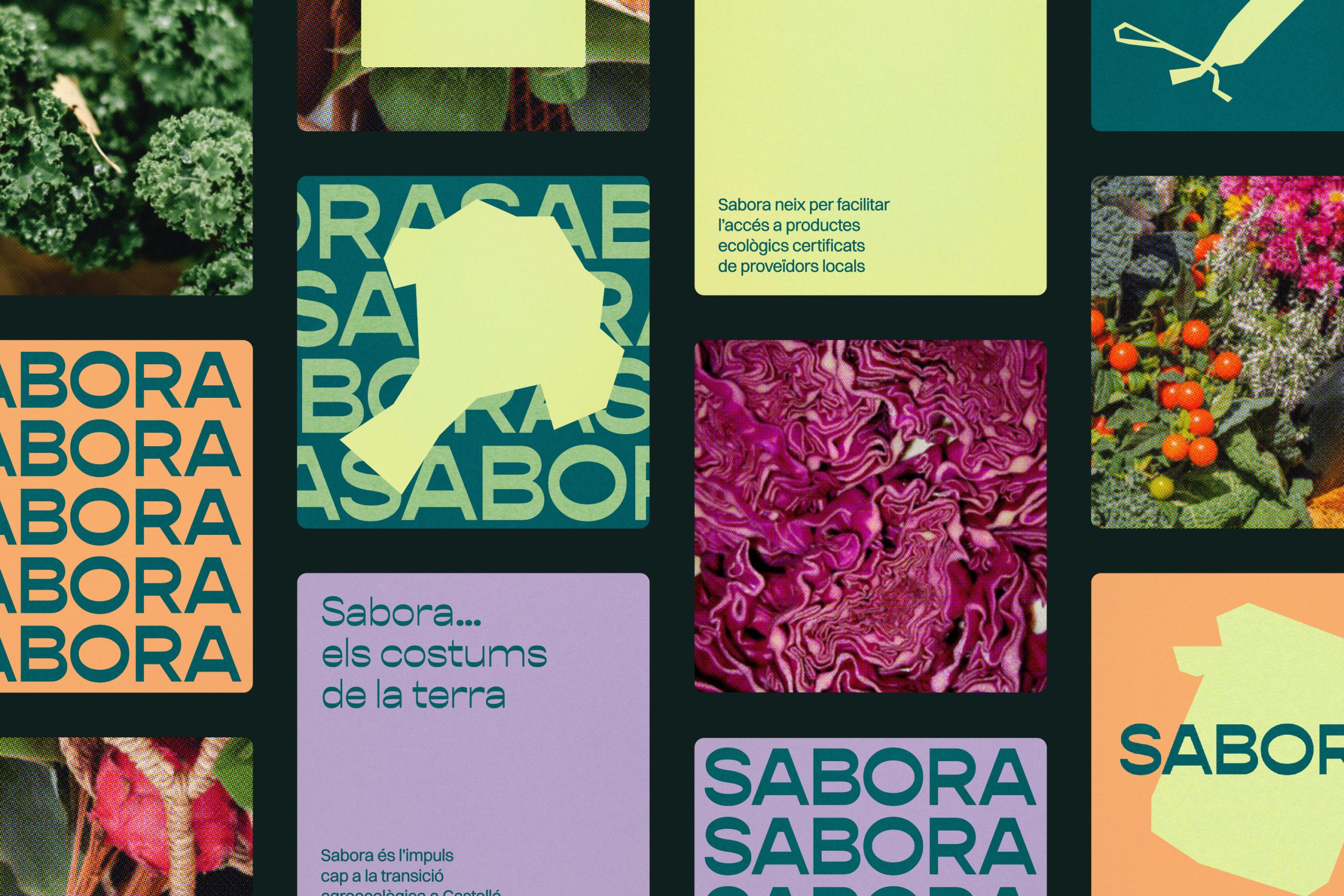 Sabora es el nuevo mercado agroecológico de la ciudad de Castellón que nace con el objetivo de facilitar el acceso a productos ecológicos certificados de proveedores locales. Para su lanzamiento necesitaban un nombre que reflejara y una identidad gráfica que reflejara sus valores.