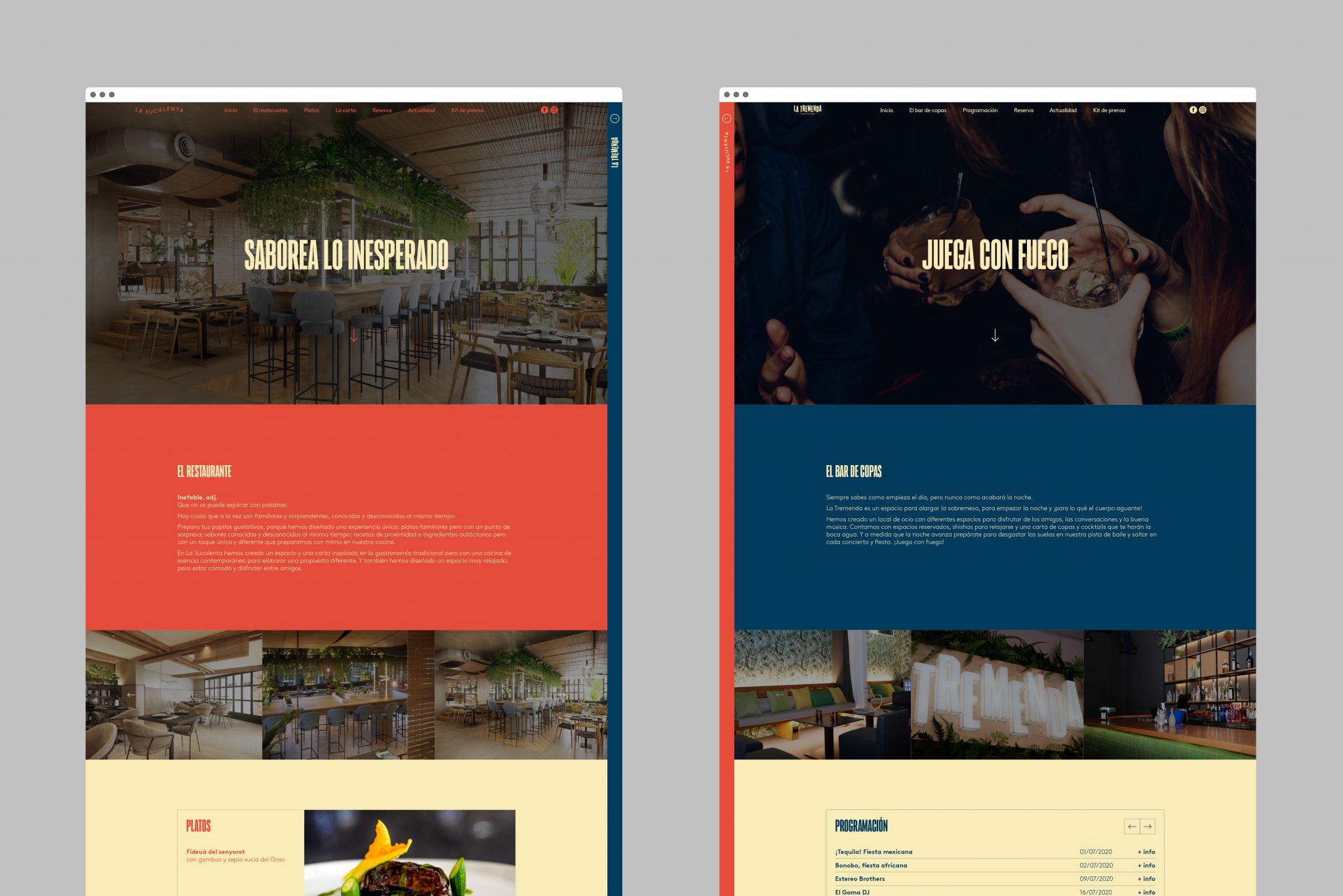 El primero es un restaurante basado en la cocina de autor, los ingredientes de proximidad y las recetas autóctonas. Para su interiorismo buscamos la inspiración en el ambiente de tascas y las terrazas, todo vestido con un lenguaje acogedor con predominio de la luz natural, la vegetación y la madera (en forma de persiana alicantina), aunque con ligeros toques industriales que ofrecen singularidad al local. La Tremenda es un local donde alargar la sobremesa, empezar la noche y bailar hasta que el cuerpo aguante.
